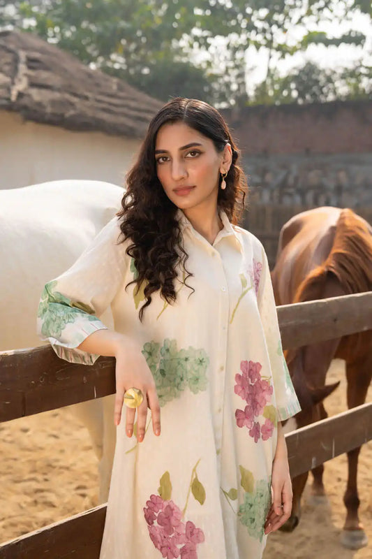 ELEGANT FLORAL PRINTED CO-ORD SET OFF-WHITE COTTON LINEN KURTA & PANT FOR WOMEN