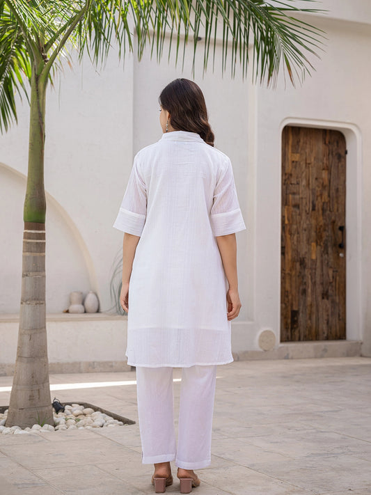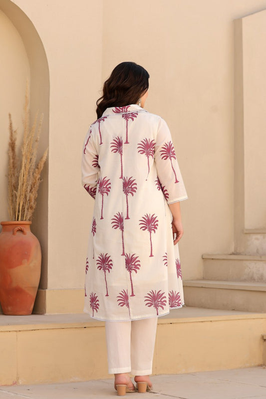 PREMIUM WHITE COTTON CO-ORD SET WITH PALM PRINT – COMFORTABLE & STYLISH DAILY WEAR