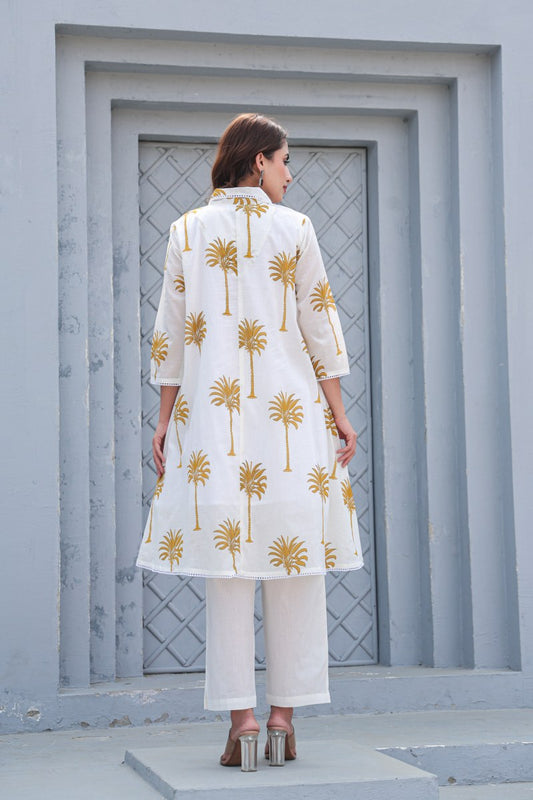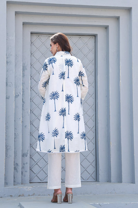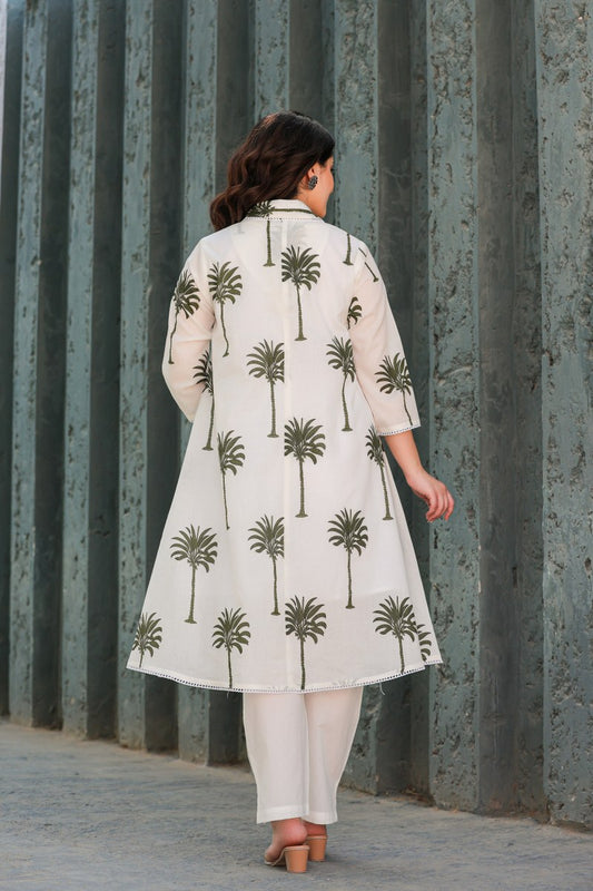 PREMIUM WHITE COTTON CO-ORDS SET WITH PALM PRINT – ELEGANT DAILY & OFFICE WEAR