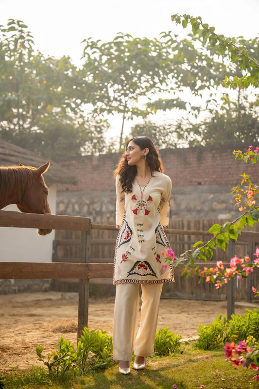 WOMEN'S OFF-WHITE FLORAL EMBROIDERED COORDINATED SET