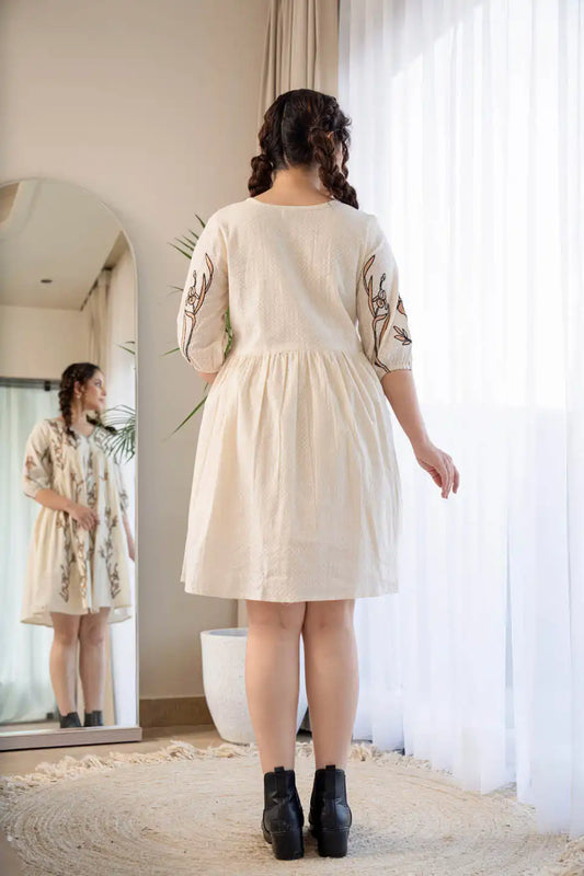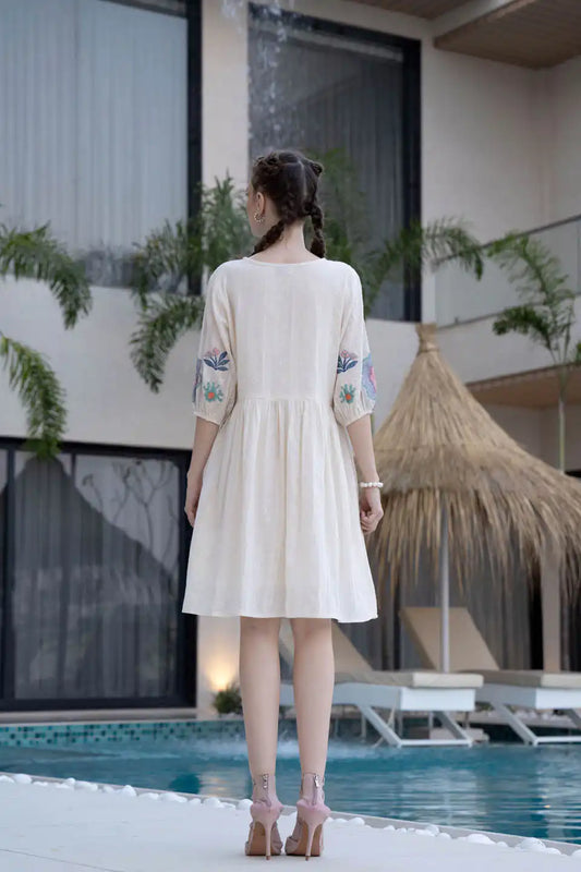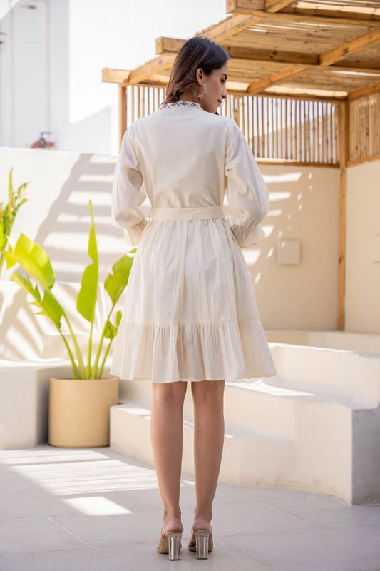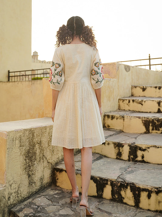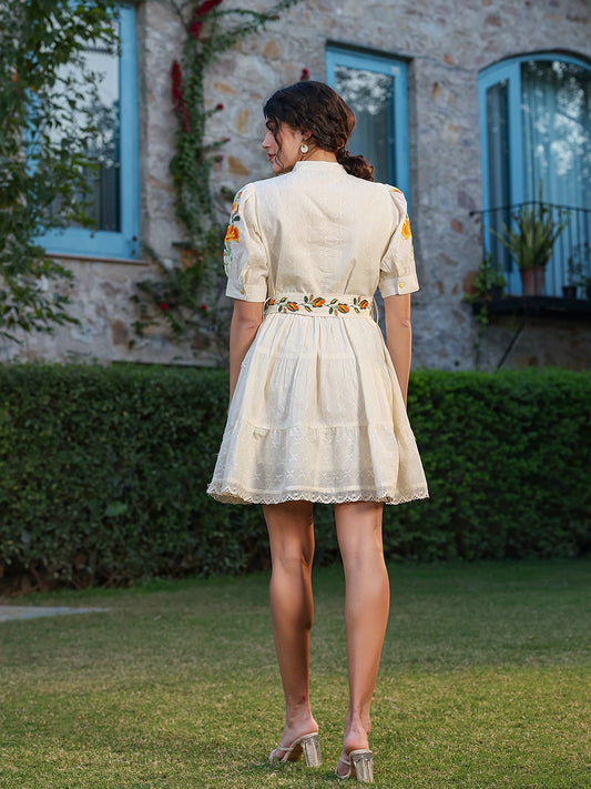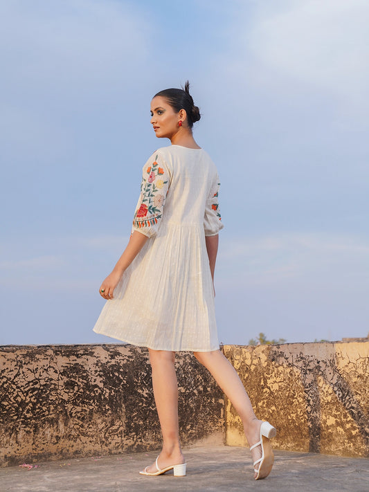 ELEGANT OFF-WHITE EMBROIDERED SHORT DRESS