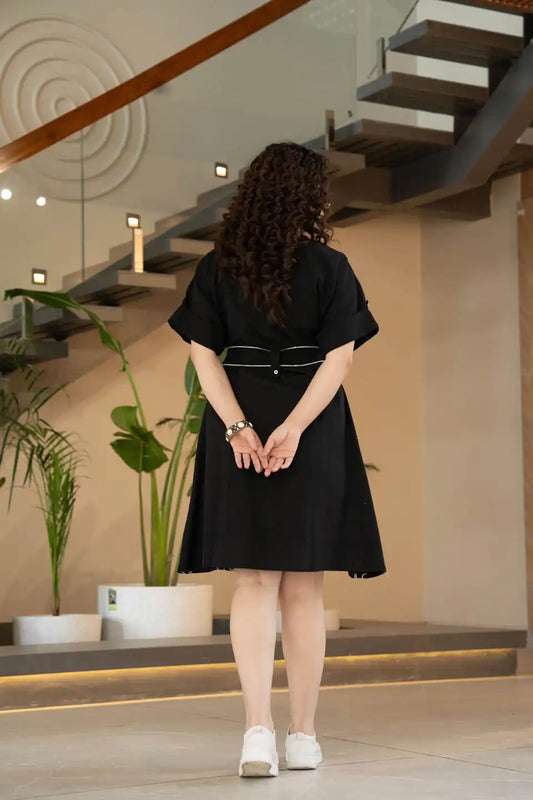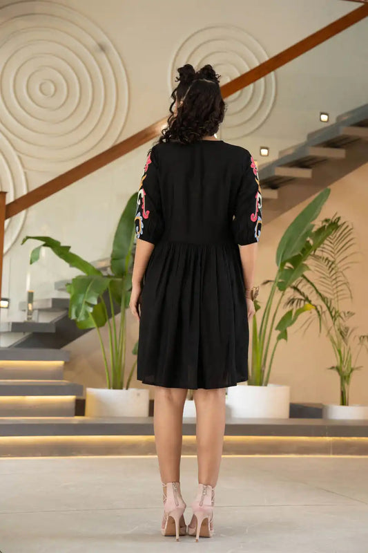BOHO EMBROIDERED BLACK COTTON SHORT DRESS