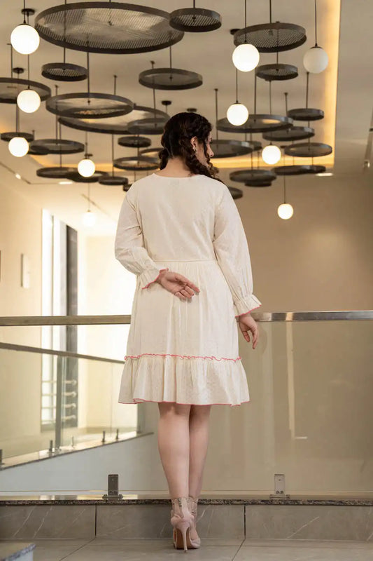 WOMEN'S COTTON EMBROIDERED BEAUTIFUL SHORT DRESS
