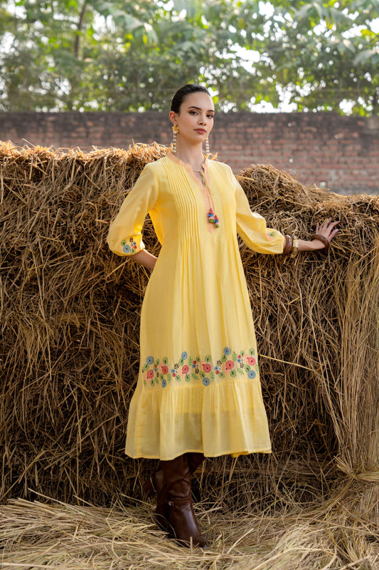 SUNSHINE BLOOM COTTON DRESS WITH EMBROIDERY