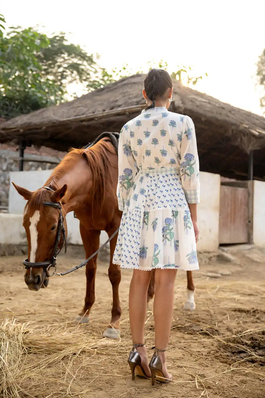 WHITE FLORAL PRINTED SHORT COTTON DRESS WITH PUFF SLEEVES
