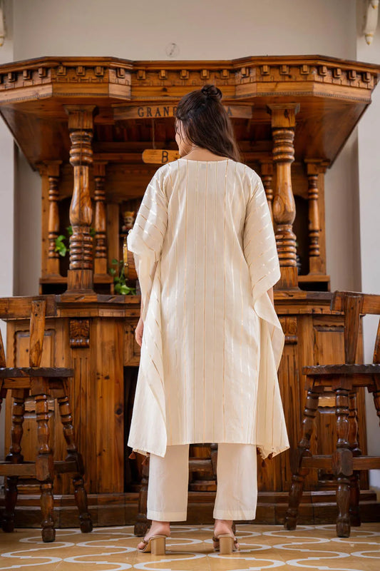 ELEGANT KAFTAN-STYLE TUNIC WITH METALLIC STRIPES & MATCHING NARROW PANTS
