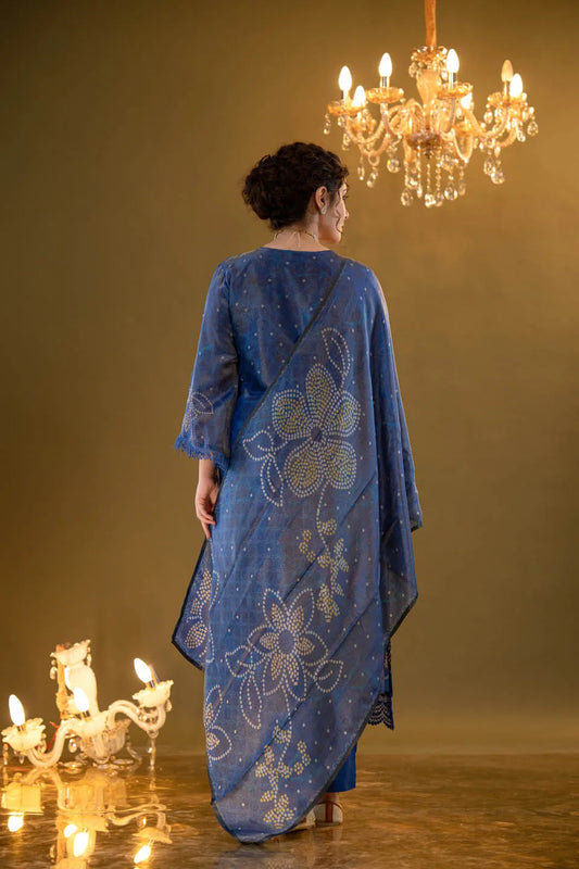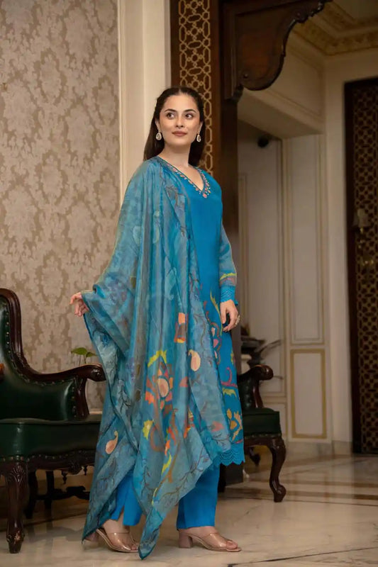 REGAL BLUE FLORAL EMBELLISHED KURTA SET WITH DUPATTA FOR FESTIVE OCCASIONS