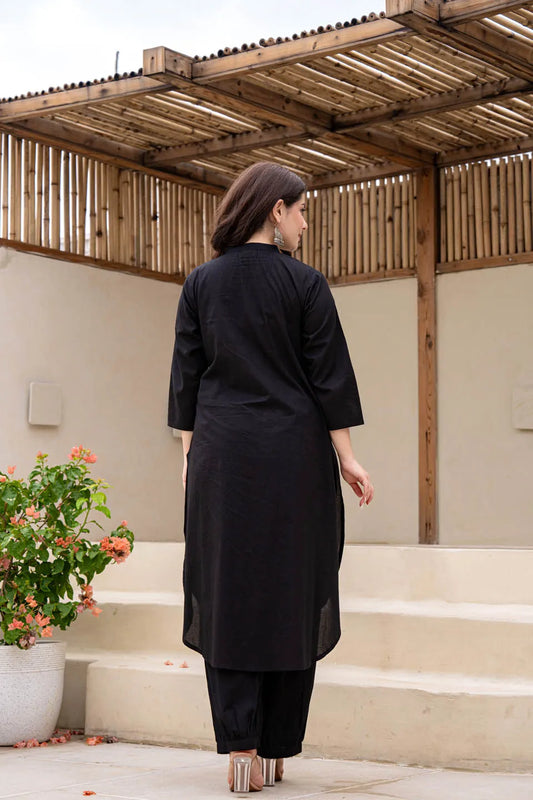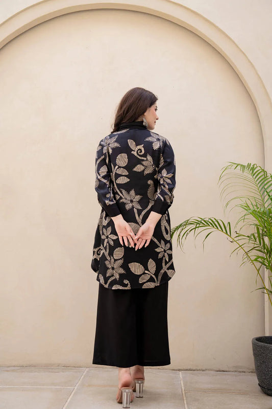 ELEGANT BLACK FLORAL EMBROIDERED KURTA WITH MATCHING PALAZZO SET
