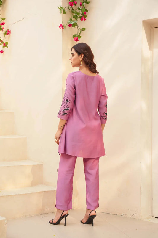 BLUSH FLORAL EMBROIDERY TUNIC & TROUSER SET