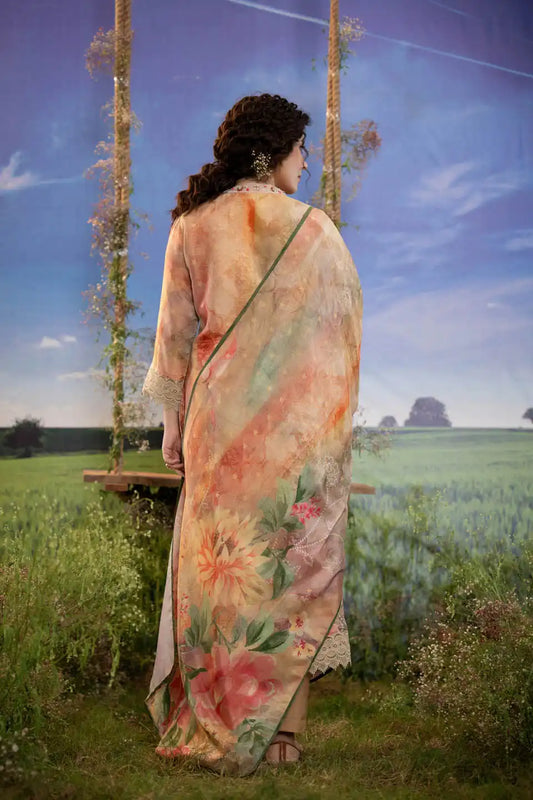 FLORAL PRINT PEACH-PINK 3-PIECE LAWN SUIT WITH LACE DETAILING & STRAIGHT TROUSERS